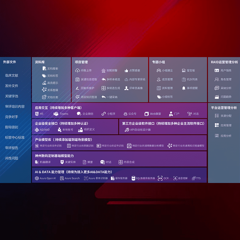 医疗器械产品上市前,,,,要熟悉严格与繁复评审标准,,,,整理分析监管机构指导文件中的海量信息。。。。企业急需一个智能化解决方案,,提升知识管理效率,,,,提高评审通过率,,,,以提升其市场竞争力。。