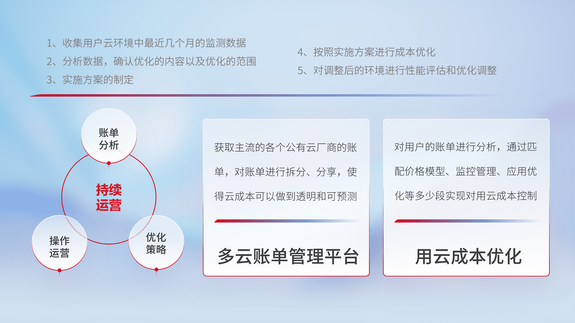 监控业务系统资源开销,,对资源的消耗精确计量,,,实现费用的透明化管理,,不断提升资源使用率,,,,调整资源购买方式,,,,降低资源费用成本,,,,用云成本可预测、、、用云费用可优化,,,云资源配额有据可依。。