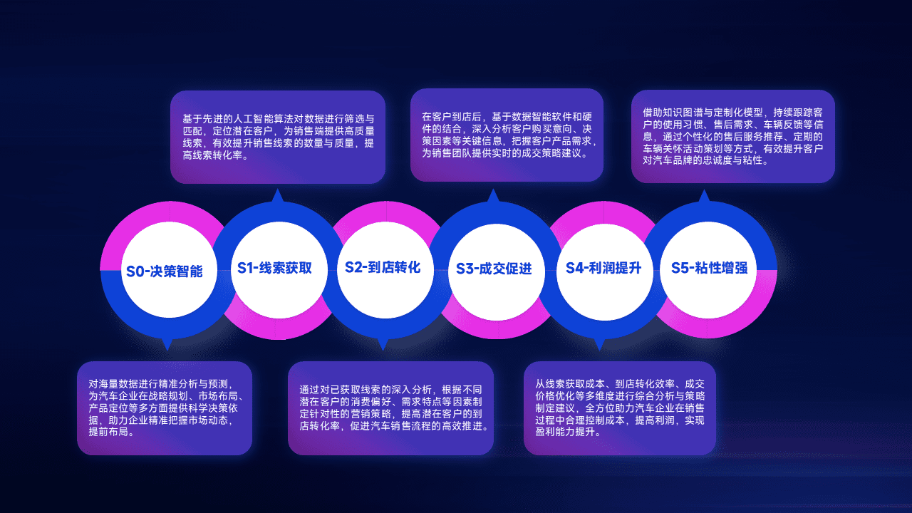 通过拓宽潜在客户来源、、、优化线索分配并提高到店转化率,,,以增强销售效率。。。同时,,,利用线索数据不断优化分析模型,,有效提升转化率,,,扩大营销影响力。。。。